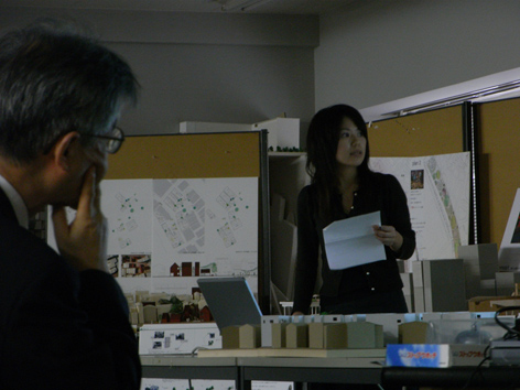 1月16日(水) 晴れだけどすごく寒い 今日は、今週末の締め切りに向けた卒制梗概チェックと、 作業全体の進行状況報告を行いました。 B4全員、文章やダイヤグラム、パース図など様々な表現方法でまとめていましたが、 全体的に「工夫しながらもっと情報をふんだんに盛り込み、計画の魅力を分かりやすく伝えること」が提出までの課題として挙げられました。 A4用紙両面1枚という限られた平面スペースでの表現はとても難しい作業ですが、だからこそ良い意味で欲張って、自分の計画を最大限に分かりやすく伝えて欲しいと思います。 なお、修士2年は昨日夕方に梗概提出を終えました!お疲れさまです。 提出日のM2ブースは、ものすごい集中力と人口密度でとにかくすごかったです…。 修士1年も就職活動が本格化してきました…。 全員わたわた気味な1月中旬ですが、ここは精一杯がんばりましょうー。 その先にはきっと楽しいことが待っている(ハズ)!!! M1:Kato
