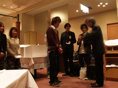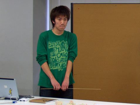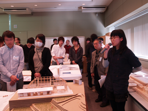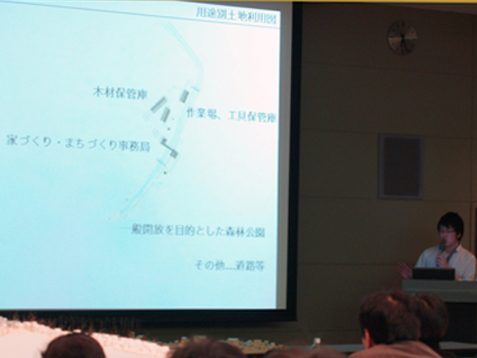 晴れ 本日はARCHIBAU大会が行われました。その中のARCHIBAU賞公開プレゼンテーション2009に森永研究室からはB4の四名が参加しました。参加者30名の中から1次審査、2次審査を経て、竹村が第2位という評価を頂くことができました。ありがとうございます。 建築の学生の発表やOBの方々からのご意見は、普段の都市環境システム学科のそれとは見方が違っており、とても新鮮でした。まだまだ、知らない世界が広がっていることを痛感しました。「卒制は初めの一歩に過ぎない」この言葉をしっかりと受け止め、今日頂いた様々な刺激を今後に活かしていきたいと思います。 key word トラックの荷台[B4] B4:asano,kanke,takemura,tsuruoka PR