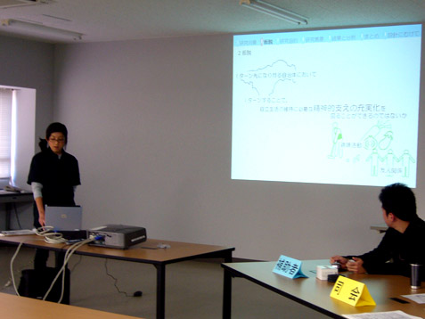 B4は体調不良の1名を除く4名が、M2は3名がそれぞれ梗概を披露しました。