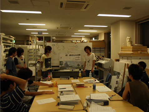 7月29日(晴れ。まさに夏!) 今日のゼミは女性陣が3名欠席ということで、nhさんが本日ただ一人の女性でした。 紅一点ですね! ゼミの内容は、B4の4人の発表とM1+1のコンペチームのプレゼンテーションが行われましたしました。 コンペチームの皆さん、お疲れ様でした! B4組は皆やっと無事にテーマが定まって、一安心といった感じです。 今日はT山さんが絶好調でした。 暑いですが皆さん気をつけましょう ![]() アクセスがそろそろ3000人を超えます。 記念すべき3000人目の方は、ぜひ報告お願いします☆ key word 市街地再開発地区[ts] ヒアリング[mk] 総合的な学習[yt] 顔の見える家づくり[st] B4:kanke,takemura PR