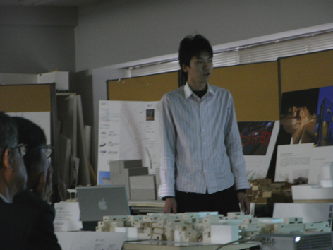 2月9日(土) くもりのち雨 本日は4年生の卒業制作発表会でした。 1年間積み上げてきた集大成です。 4月から自分の中にある問題意識の構築し、調査研究、 そして論文、設計提案と思いを形にしてきました。 提案内容は五者五様でそれぞれが持つ特徴が充分に出たものでした。 また、4年生はほぼ寝ずにこの日を迎えました。 その努力もあり、説得力のある良いプレゼンテーションだったのでは ないでしょうか。 4年生は森永研で一年間過ごす中で多くのことを学び、着実に 学んだことを自分のものにしていく姿が印象的でした。 私自身、この一年を振り返ってみると、一年通じて4年生と議論する機会も多く、 その議論の中から多くのことを学ぶことができ、成長できたと感じています。 本当にありがとうございました。 本当にお疲れさま! とりあえずゆっくり休んでください 休んで頭が整理された頃に、一度フィードバックしてみるのもよいと思います。 進学組も就職組も卒制で得たものを糧にさらなる高みを目指して頑張って下さい! M1:tsuchiyama